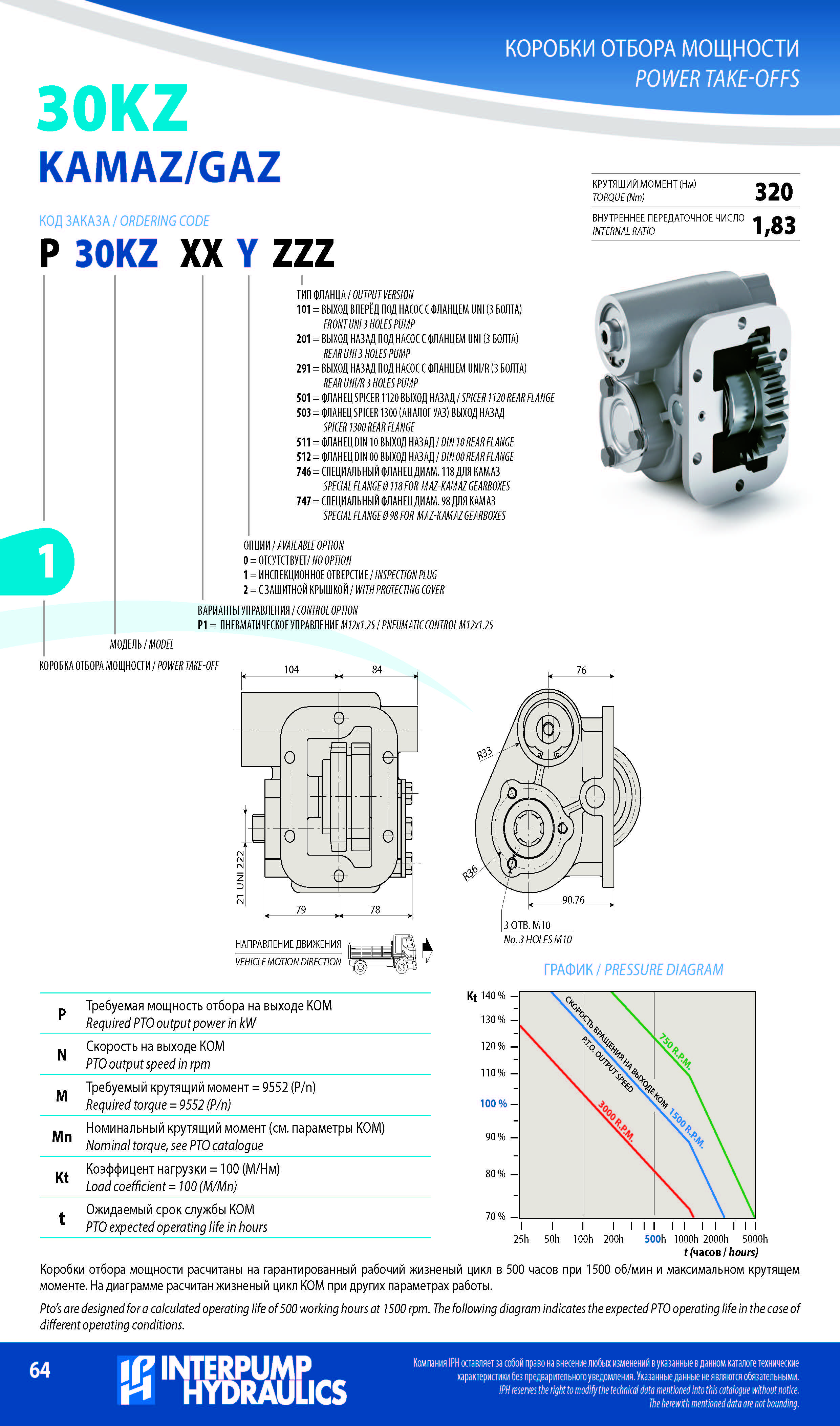 | Коробка отбора мощности PF180050P под насос 310.3.56 | RGC | Коробка отбора мощности (аналог МП-50) Артикул: PF180050P Крутящий момент ном/макс (Nm): 320/400 Частота вращения КОМ при 1000 об/мин двигателя: 690 Мощность КОМ при 1000 об/мин (л.с./кВт): 48/35 Вращение насоса: левое Выход: насос 310.3.56 Управление: Пневматическое Масса (кг): 11.5 |