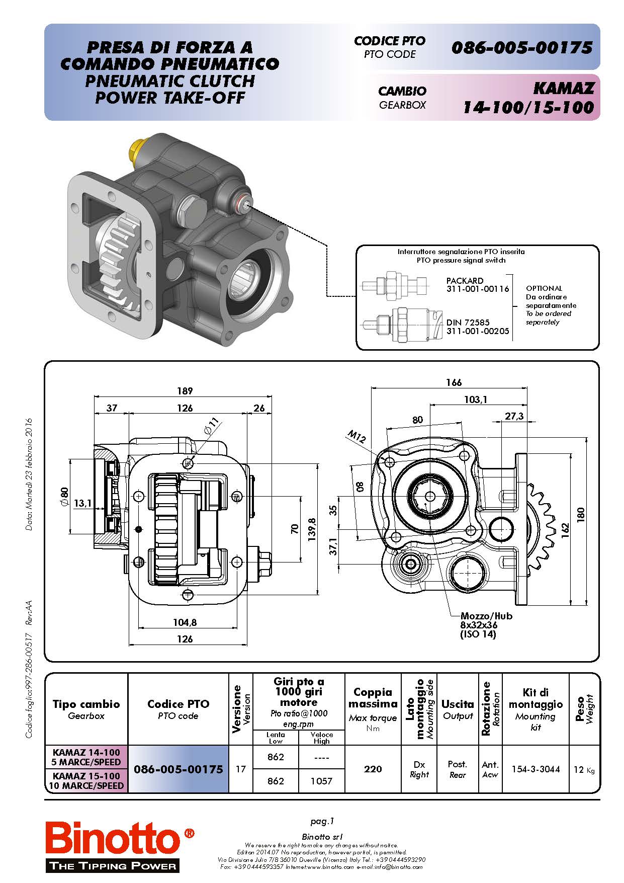 | Коробка отбора мощности 086-007-02135 UNI (2 выхода) | Binotto | Коробка отбора мощности КАМАЗ, ВАЛДАЙ, ГАЗ-3309